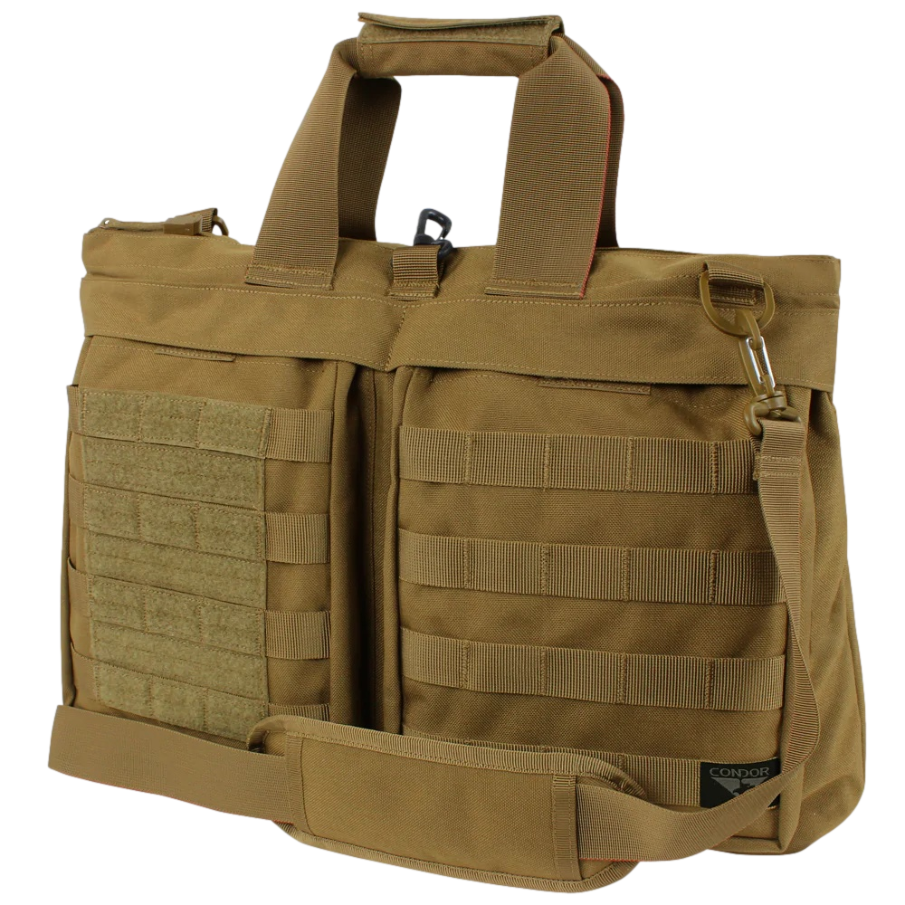 Confortável de transportar e eficiente, a bolsa Aviator da Condor Outdoor Products, Inc. oferece o estilo de uma bolsa de capacete militar icônica, reduzida para uso diário. Prática o suficiente para uso diário ou viagens, a bolsa possui uma alça de ombro removível e uma almofada de ombro, bem como um painel de patch grande. O compartimento principal tem fecho para segurança e os bolsos internos oferecem organização infinita. Uma alça de bagagem na parte de trás da bolsa torna o Aviator o companheiro de viagem perfeito.