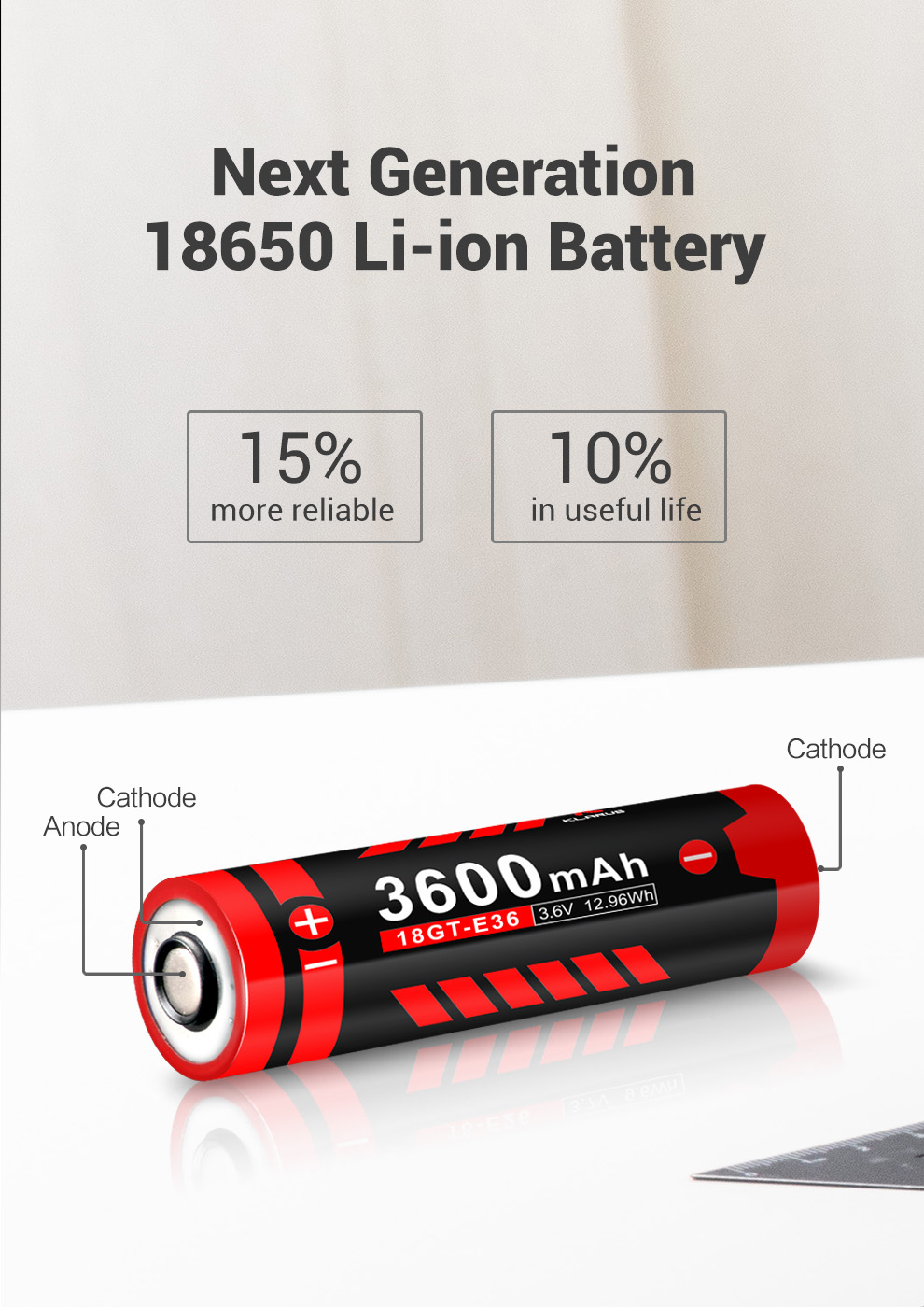3600mAh 18650 Power Lithium-ion Battery Klarus 18GT-50