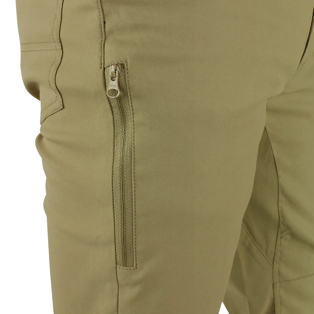 Use o equipamento certo para qualquer desafio ao ar livre, vestindo um par de calças Cipher da Condor Outdoor. Projetado com o operador urbano em mente, o Condor Cipher Pants combina uma estética moderna com desempenho técnico, dando o melhor dos dois mundos e uma opção de vestuário versátil. Construído com tecido elástico leve e de secagem rápida, usar estas calças garante conforto total 24 horas por dia, 7 dias por semana. O forro dos bolsos em micro mesh ajuda a aumentar a respirabilidade e a manter o utilizador fresco e confortável em temperaturas mais quentes. Estas calças táticas bege, pretas, cáqui ou carvão também apresentam uma virilha reforçada para maior capacidade de manobra. Guarde acessórios e suprimentos essenciais nos dois bolsos para gadgets na frente ou nos dois bolsos traseiros. O Condor Cipher equilibra desempenho e conforto para os desafios futuros.