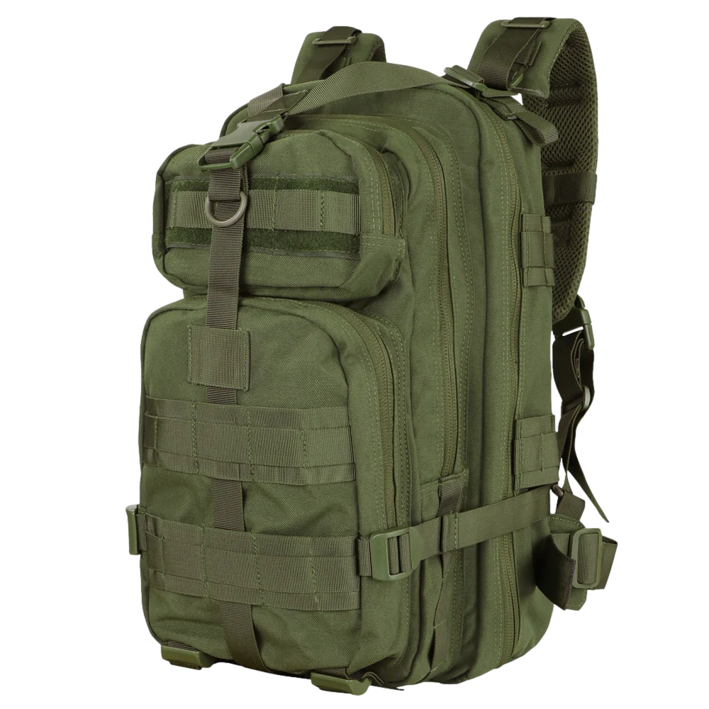 O Condor Compact Assault Pack da Condor Outdoor Products, Inc. foi projetado para transportar equipamentos críticos. A mochila é confortável, leve e com vários compartimentos dentro e fora , para fornecer armazenamento para praticamente qualquer coisa que queira carregar. Use o Compact Assault Pack para carregar laptops, tablets ou outros equipamentos tecnológicos sem se preocupar. Para longas caminhadas pelo campo, a mochila é equipada com um bolso de hidratação embutido que pode acomodar um reservatório de água Condor Torrent (Gen I e II) 2,5L ou 3,0L.
