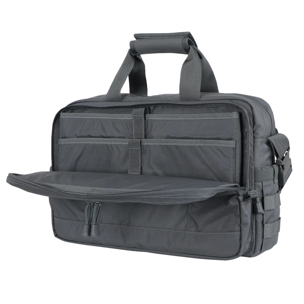 A mala Metropolis da Condor Outdoor Products, Inc. é a única ferramenta que você precisa para se tornar o conquistador do escritório. Esteja a trabalhar na sala de reuniões ou em campo, pode ter certeza que terá espaço para armazenar adequadamente documentos, gadgets e ferramentas essenciais para realizar o trabalho. A pasta Metropolis é leve e eficiente, oferecendo a combinação perfeita de profissionalismo e utilidade num único pacote. A bolsa possui um grande compartimento principal com dois bolsos de malha e um painel de loop, bem como um grande compartimento traseiro com uma manga de lã acolchoada para laptop.
