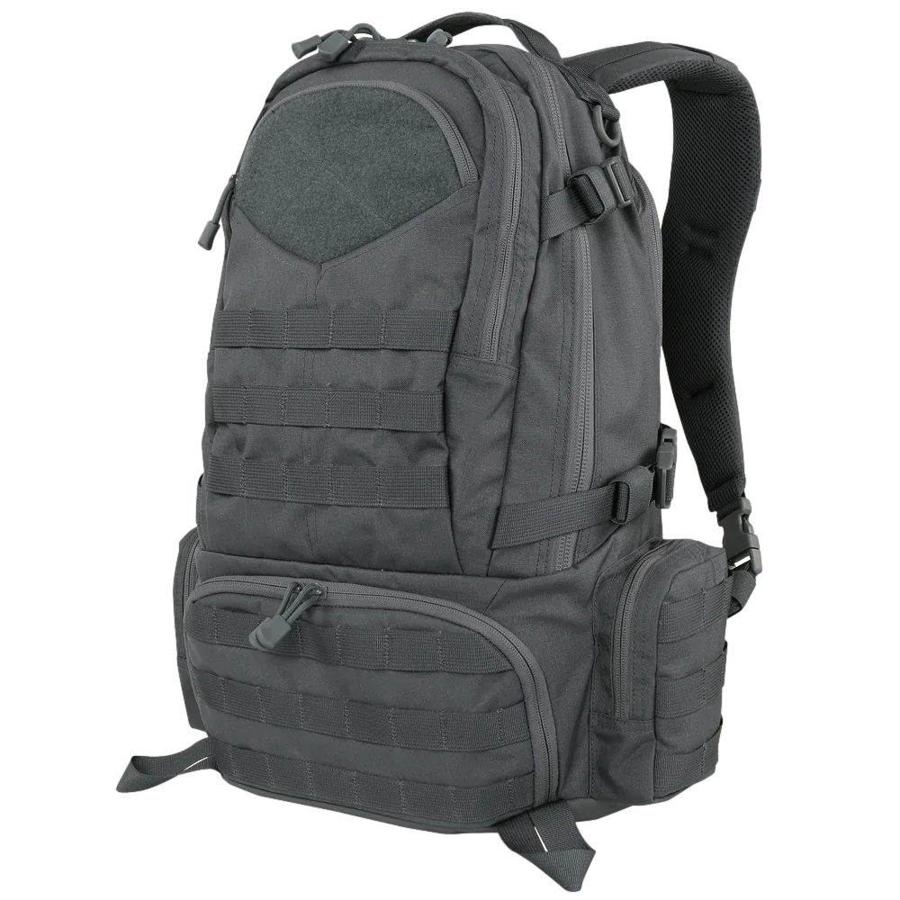 O Titan Assault Pack da Condor Outdoor Products, Inc. é feito de tecido de nylon 500 denier com fio de nylon composto de alta resistência à tração. A pele sintética de rinoceronte nas zonas de alta abrasão oferece resistência extra ao desgaste, e todos os fechos YKK da mochila são equipados com puxadores de paracord. A mochila ainda tem um bolso traseiro que pode funcionar como porta-laptop ou compartimento para hidratação. O Condor Elite Titan Assault Pack contém todos os recursos que o utilizador precisa e é projetado para mantê-lo em movimento, com uma forma eficiente e construção leve.