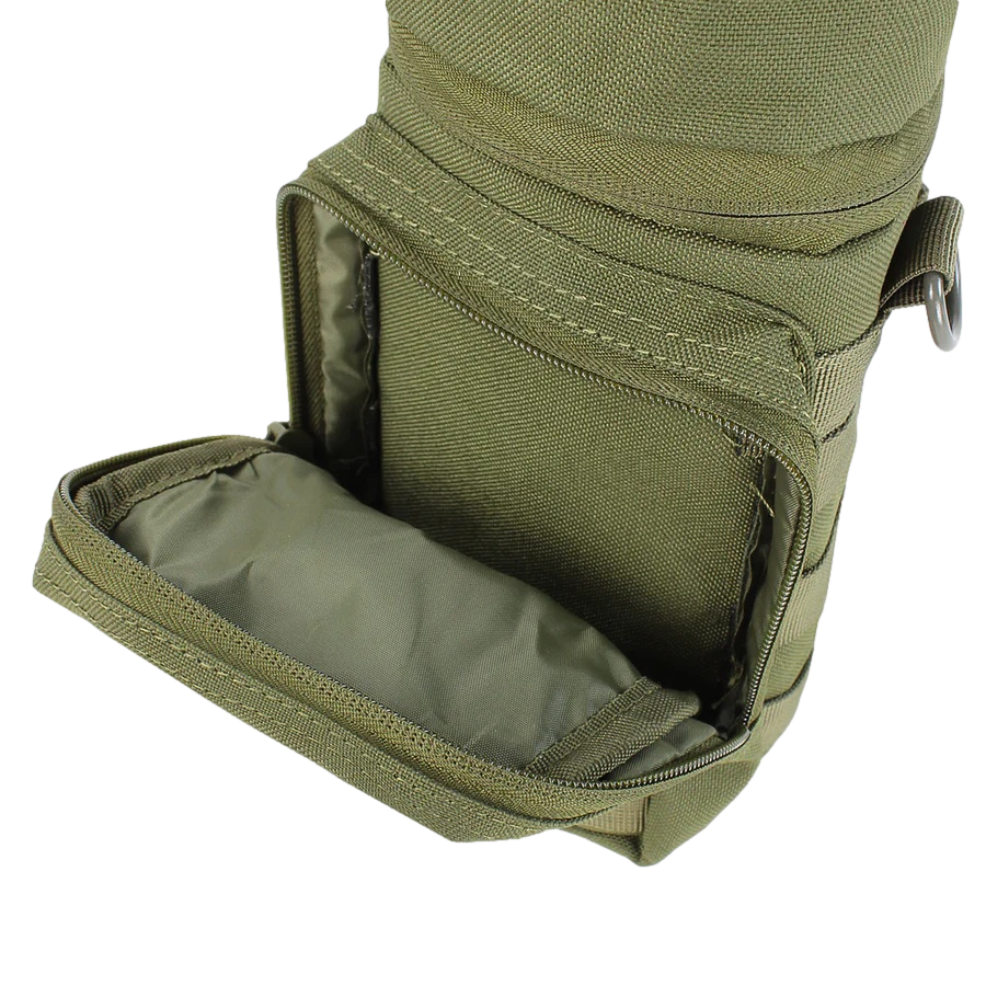 Certifique-se de que está hidratado e pronto para enfrentar qualquer missão ou atividade ao ar livre com esta bolsa para garrafa de água Condor. A bolsa Condor H2O foi projetada para poder carregar a sua garrafa de água com as mãos livres usando uma alça de ombro, cinto ou correia modular. O compartimento principal acolchoado mantém sua garrafa de água segura com um fecho superior. Este suporte para garrafa de água também possui um tubo de hidratação, permitindo a você a opção de desfrutar de hidratação sem as mãos enquanto estiver em movimento. O bolso utilitário frontal possui um fecho seguro e pode ser usado para carregar acessórios ou suprimentos adicionais. Com correias resistentes para acessórios modulares, esta bolsa para garrafa de água MOLLE é compatível com uma variedade de equipamentos, incluindo mochilas e cintos. A bolsa H2O da Condor Outdoor oferece uma opção versátil para armazenar sua água por perto.