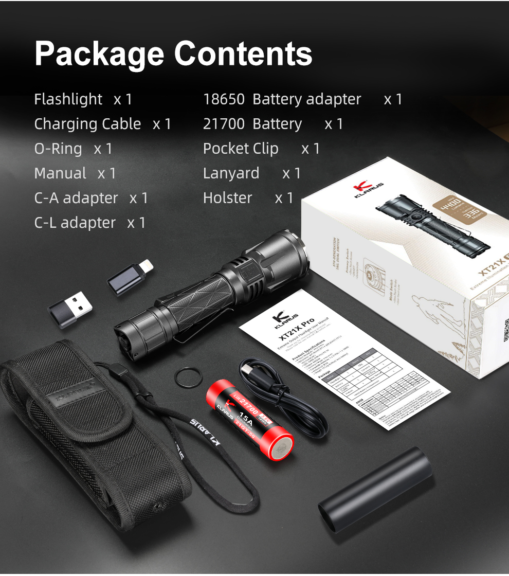 XT21X PRO LED Flashlight 4400 Lumens 75,00 € Desconto de %. Ao preço do produto acresce IVA de 23%. Lanterna XT21X Pro KLARUS com 4400 Lumens!! Quantidade Comprar Contactar 5 unidades em stock | SKU: XT21XPRO Marca KLARUS Características Partilhar Descrição Também poderá gostar de